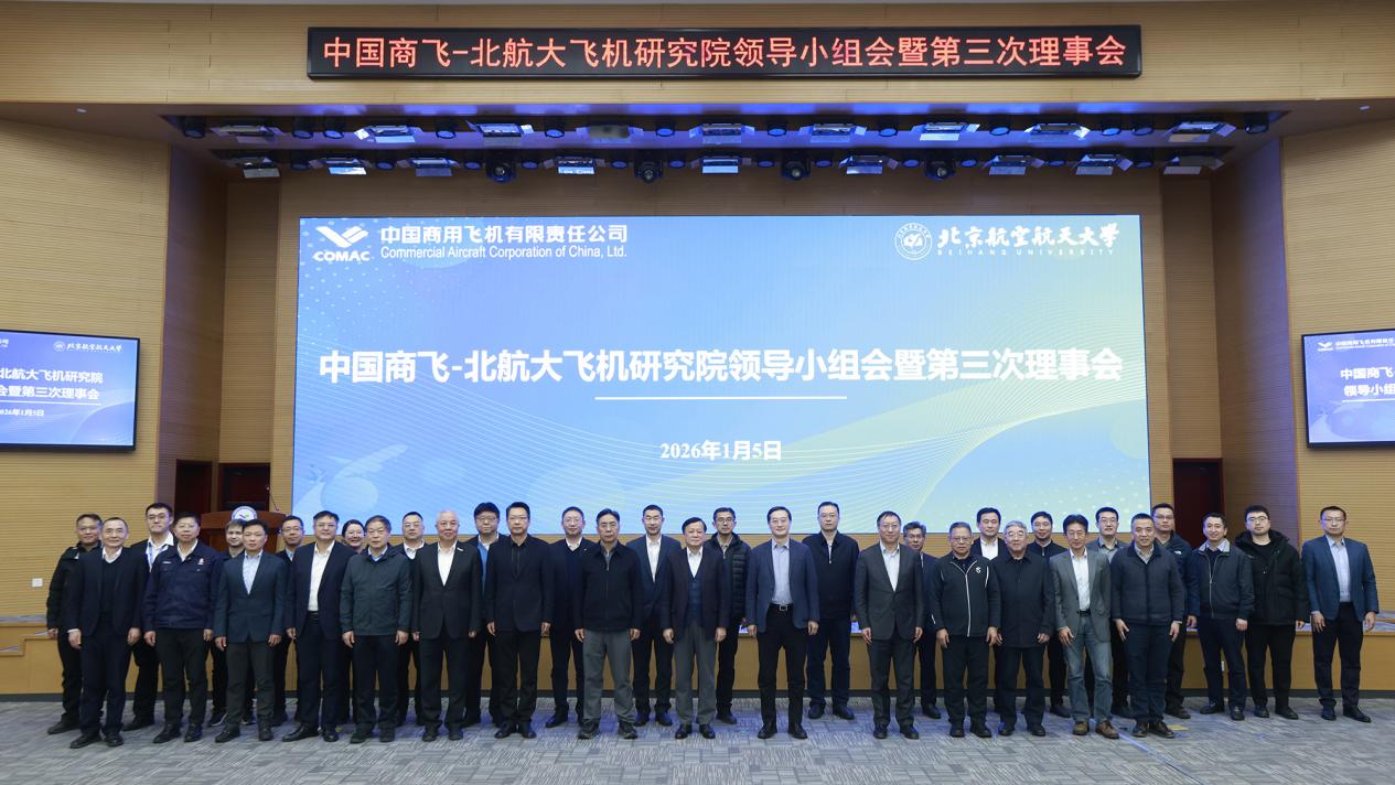 (通讯员 靳海川 李灿)1月5日下午,北京航空航天大学与中国商飞联合召开中国商飞—北航大飞机研究院领导小组会暨第三次理事会,会议在中国商飞北京民用飞机技术研究中心举行。北航校长王云鹏,副校长吕金虎;中国商飞公司党委书记、董事长贺东风,党委副书记、总经理沈波,副总经理吴文生出席会议。中国工程院院士、中国商飞首席科学家吴光辉,中国工程院院士、C909系列总设计师陈勇,中国工程院院士王华明,中国科学院院士王...